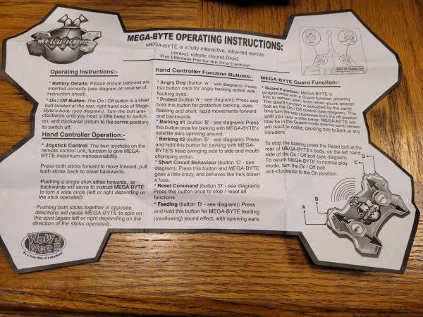 Mega-Byte is a "fully interactive, infra-red, remote control Hound Droid".