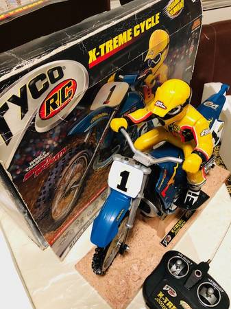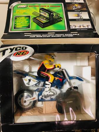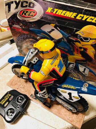 Tyco/Mattel RC XTREME Moto-X Cycle. Jeremy McGrath Yamaha Dirt Bike, Mattel Performs Dirt Bike Stunts approx. 13" Motorcycle Battery pack Not included. It sells on ebay for $195