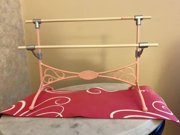 For sale is a retired Double Barre Freestanding Ballet bar for an 18” doll. Can be used with OG, Our Generation, American Girl or any other dolls. The dance bar is in like new condition with no chips or scratches. Also included, is a foam yoga mat. Cash Only. Please see “more ads by this user” for additional items.