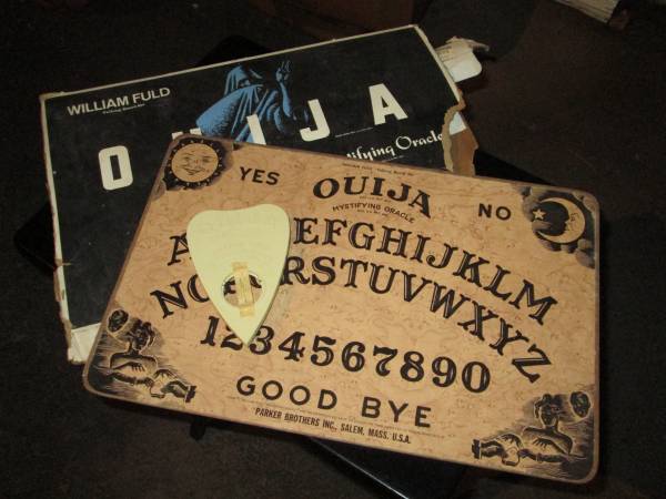 Ouija Boards William Fuld 1960's w/box - Clean planchette - $45 William Fuld 1960's w/box - Planchette missing pin - $35 Brand New - Glow in the Dark - $35