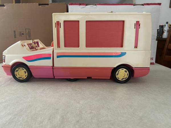 Vintage 1992 Mattel Golden Dream Motorhome Camper w Detachable Truck Pink White