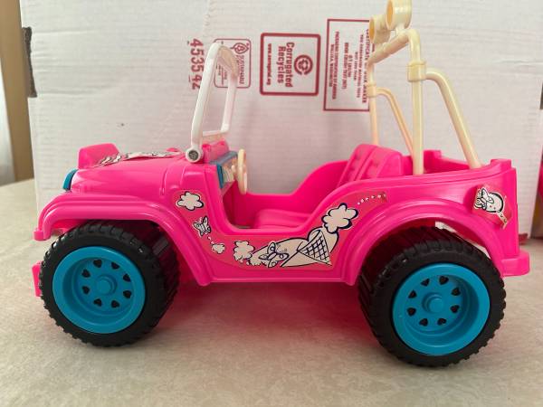 Vintage Barbie Hot Pink Jeep By Mattel 1987 - Blue Rims Black Tires.