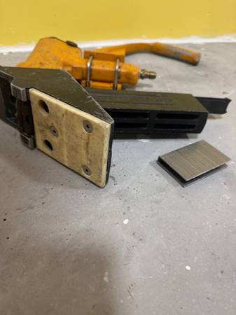 This Hardwood Flooring Cleat Stapler with Pneumatic power, drives staplers and cleats into the wood flooring surface quickly and efficiently. Long reach handle for improved comfort and control. Set up for Staples. Factory sells conversion Kit for Nails (MIIIFN) if wanting option.
