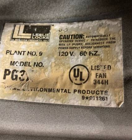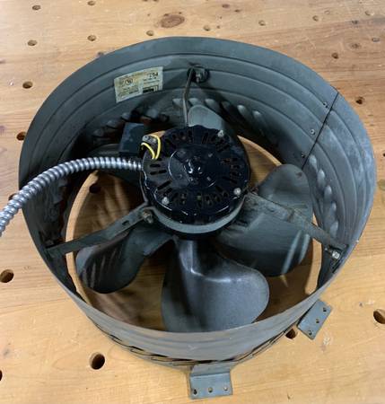 15” Gable vent exhaust fan. 120 VAC. Runs fine. You’re welcome to plug it in to test it. Cash only. No exceptions. No scammers please. Send a phone number and I will call you to set up a date/time...