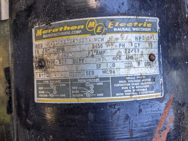2hp 3450 rpm 115/230 volts. Came from air compressor.
