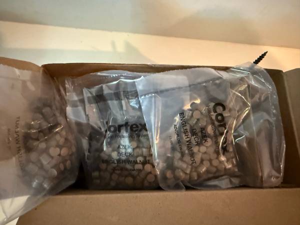 350 fasteners, with 400 English Walnut plugs. Perfect for your deck