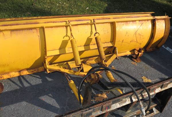 This is a modified 10' wide plow (117" wide), it has a bracket on it to connect it to Bobcat skidsteers and also has hydraulics for adjusting the angle. Make sure to turn on aux hydraulics when you are using it. We no longer need this as we have another machine we're using for snow removal.