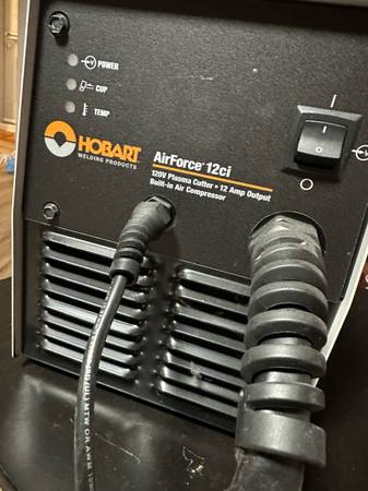 A Hobart plasma cutter with built in air compressor so no air hook up needed and this is included. $1,200 OBO