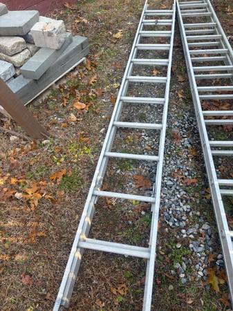 11' unextended probably 18' extended. Left ladder in picture. I have about 20 other ladders available for sale(mostly a frames) call or text Curt . No emails