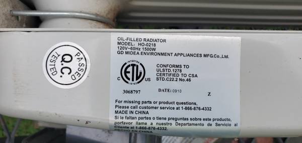 PELONIS Oil-Filled Radiant Electric Space Heater Model HO-0218 - works fine $40