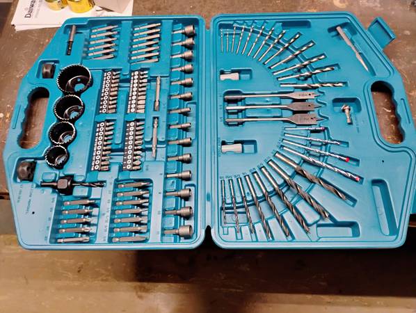 Brand new 125-piece drill and bit project set with hole saws, spade bits, drill bits and a very large assortment of driver bits; all in a handy carry case. Cash only. Please call or e-mail Paul (No...