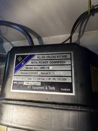 Selling a JET JMD-18 Milling/Drilling Machine with power downfeed in excellent working condition. Comes mounted on a sturdy bench and includes extra tooling for a complete setup.