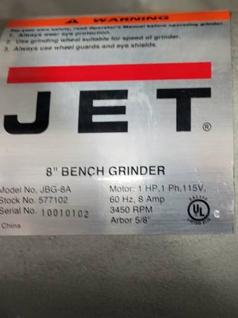 JET Bench Grinder 8in 115V/1HP-3450RPM Industrial Metalworking **LikeNew** Reply to post or call Tuesday thru Saturday 10am-5pm Serious Buyer Please!!! cashncarryonly Guarantee2Work* “”Se Habla...
