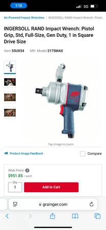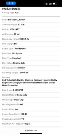 Up for sale I have a barely usedIngersoll Rand 2175 1” impact gun shorty good for tight spaces works well very well. Taken care of and oiled daily. Every time used asking price is $200 or best...