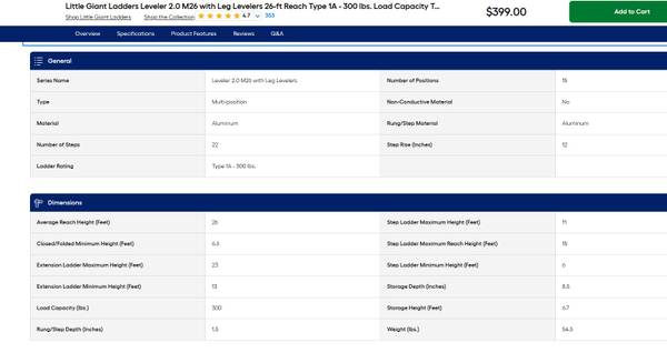 Little Giant 25.1ft*Reach Ladder**$285eaFirm**