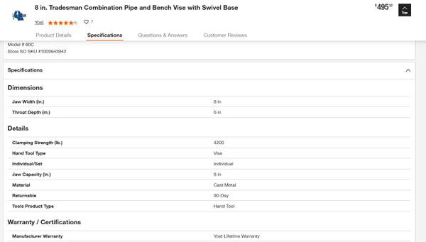 Yost 8in Vise Tradesman Combination Pipe+Bench Vise W/Swivel Cast Metal-4200lb Clamping Strength **LikeNew** Reply to post or call Tuesday thru Saturday 10am-5pm Serious Buyers Please!!...