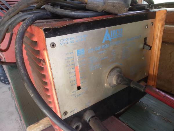Airco "Stinger" 225 amp AC welder for sale. This is a working unit with both welding leads, electrode holder, ground clamp, currently set up with the dryer 220v plug and power cord included, as pictured. This is a Miller Thunderbolt AC machine re-branded as Airco.