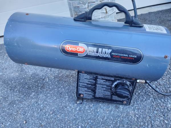 Dyna-Glo Delux Portable 60,000 BTU Propane Forced Air Heater with Propane Tank, $100 firm In good working condition. Check my other listings, I have several kerosene and propane Space heaters for...