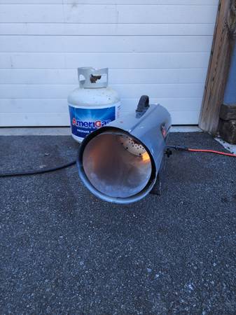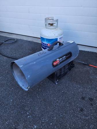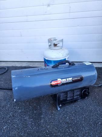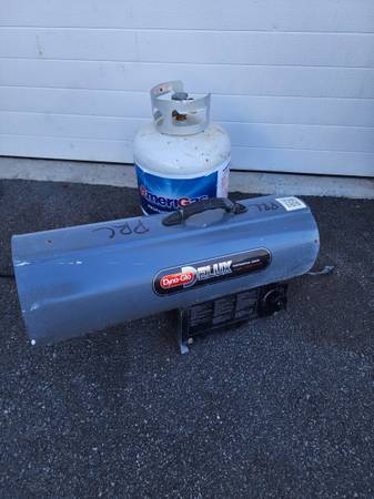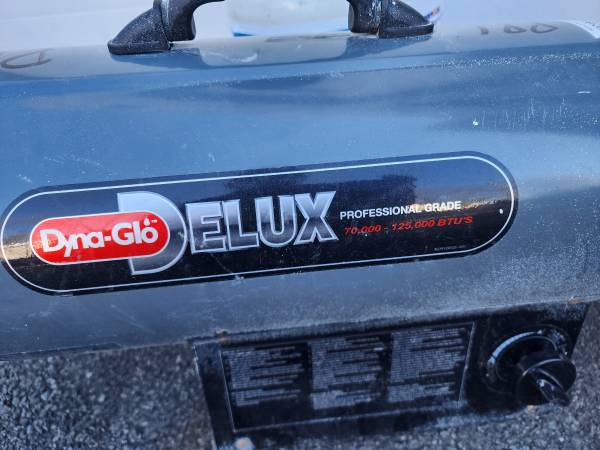 Dyna-Glo Delux Portable 125,000 BTU Propane Forced Air Heater with (empty) propane Tank, In good working condition. Check my other listings, I have several kerosene and propane Space heaters for sale