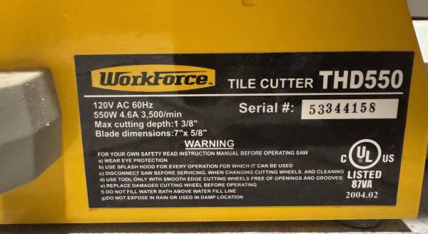 Used 7" Tile Wet Saw. Used only a few times, in very good condition.