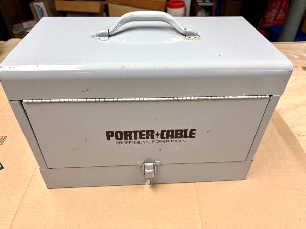 Never Used - buried in shop Original Owner Porter Cable Metal Toolbox for a Router Excellent condition Very Sturdy Vintage Metal Tool Storage Case Made in USA Has storage marks and some paint peel...