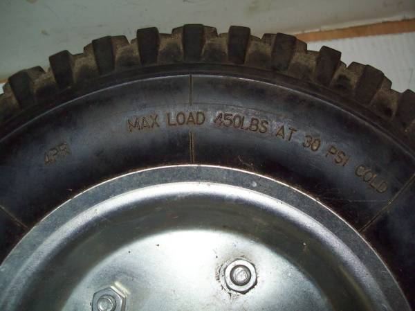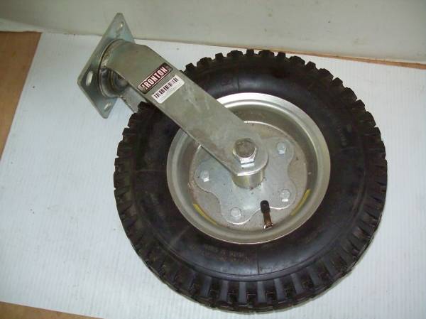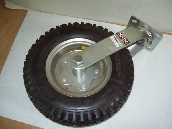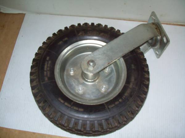 Selling an older model Northern Tool Part No. 50454 6" wheel pneumatic tire & tube swivel caster never used. I bought this for a lawn cart project that never materialized. This is identical to the current offering from Northern Tool but with a knobby tire tread. The tire measures roughly across 12". Spec's on the mounting holes can be had from looking at the Northern Tool current caster. CASH payment on pickup. If you're interested let me know. If the listing is up it's available and asking such will make it disappear for you. It's located in Vernon New Jersey not far from the high school and 3.7 miles in from the New York State border with neighboring Pine Island 10969.