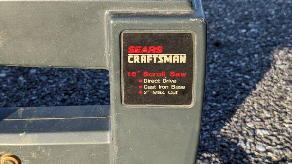 Sears Craftsman 16" scroll saw. Direct drive. Very good condition. Very solid cast iron base. No money apps accepted. Cash only transaction.