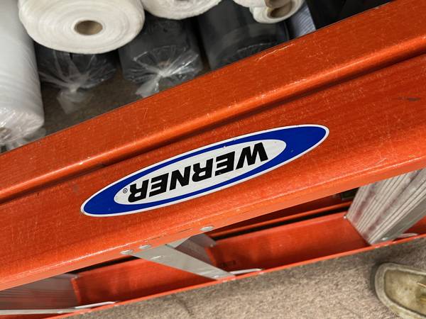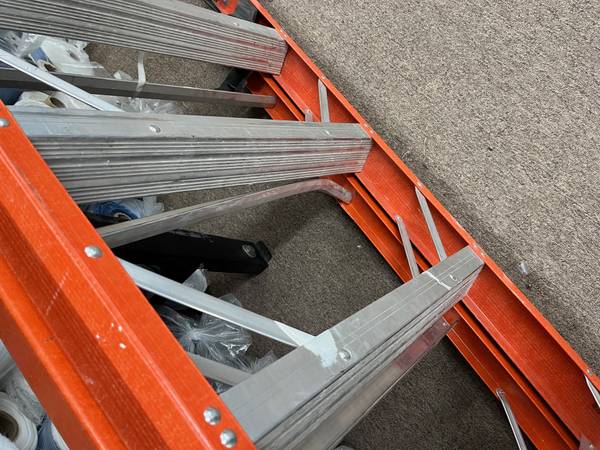 One of the back rungs is dented, see photo. Other than that, ladder is in great condition. New ladder is $269 at Home Depot. We moved to a new building and no longer need the taller ladder.