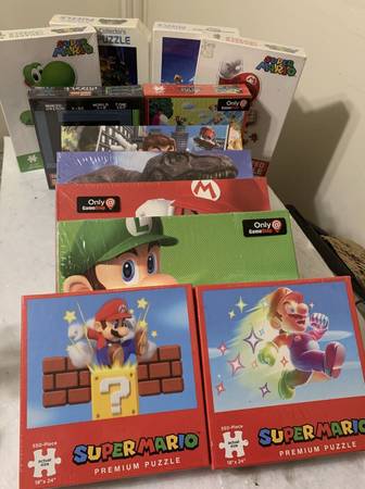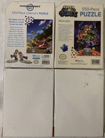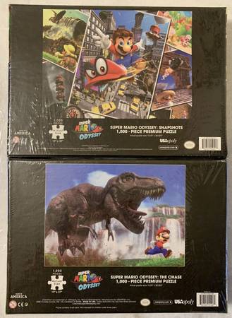 LOT OF 12 Mario Jigsaw Puzzles ($200) --------------------------------------------------- CONDITION: ALL NEW IN BOX - SEALED 1) USAopoly: Super Mario Odyssey Dinosaur - 1,000 piece 2) USAopoly:...