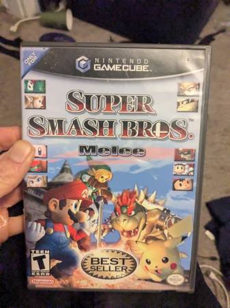 this is a perfect condition super smash Brothers melee that comes in original box with a memory card that has all levels and characters unlocked.
