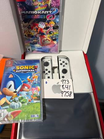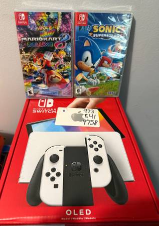Brand new Nintendo switch OLED white I am including a brand new sealed game of mario kart deluxe 8 and brand new sealed game of sonic superstars Can meet at the passaic police department Text me...