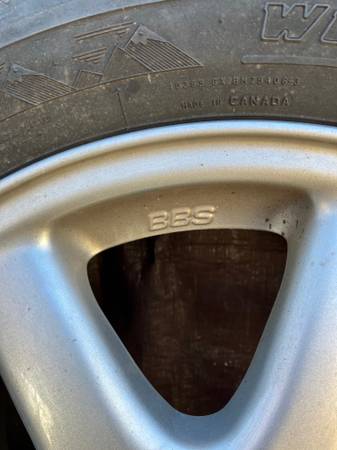 Saab / BBS alloy rims with snow tires mounted.