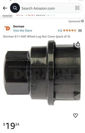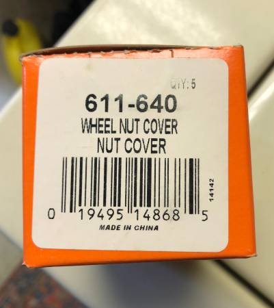 Dorman 611-640 Wheel Nut Cover Plastic Color: Black Fits 2000-2011 Chevy Impala 2002-2007 Chevy Monte Carlo General Motors OEM # 9593233 / 9594436 Metric Thread M24-2.0 Brand New in Box ( 5 per box...