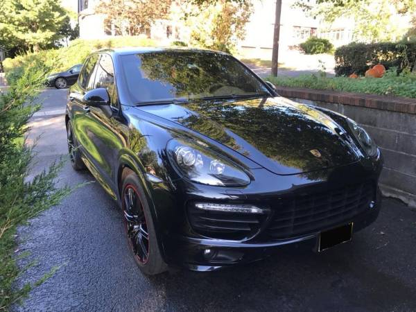 · Wheels: Genuine Porsche Cayenne Sport Edition rims. Some curb rash is present, but the wheels are structurally sound and still look sharp on the vehicle, black rims with custom red along outer edge.