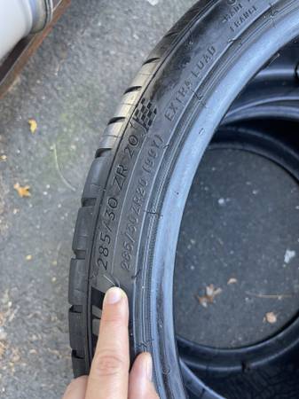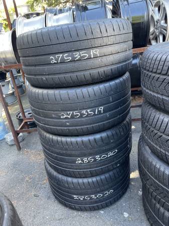 275/35/19 and 285/30/20 Michelin run flat staggered set of matching used tires in great condition 400$ for 4 tires plus tax.