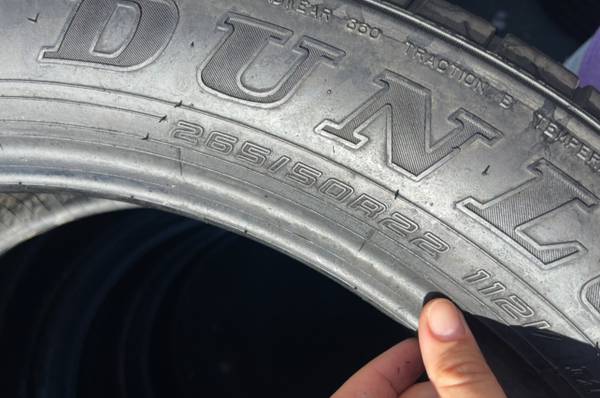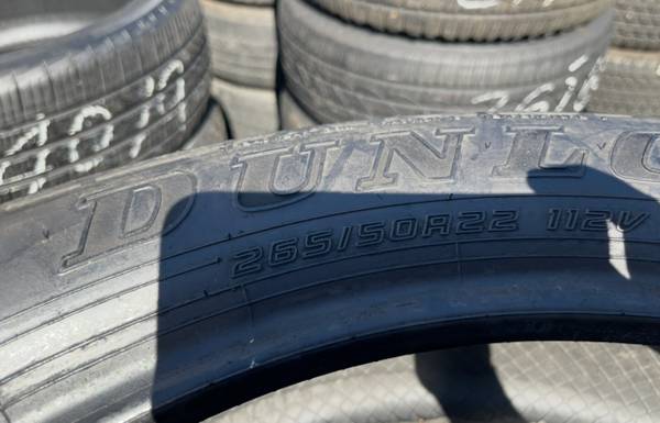 265/50/22 Dunlop set of matching used tires in great condition 350$ for 4 tires plus tax.