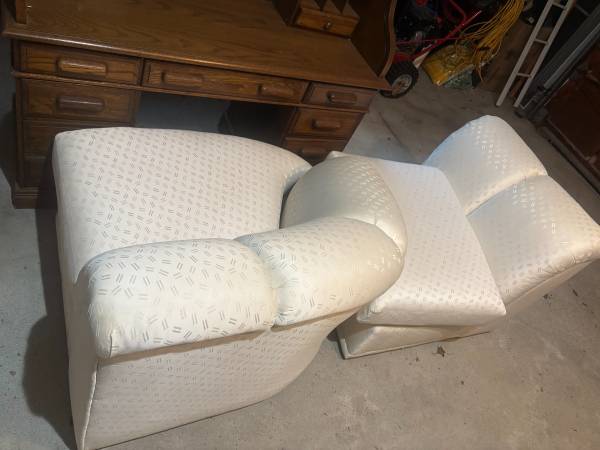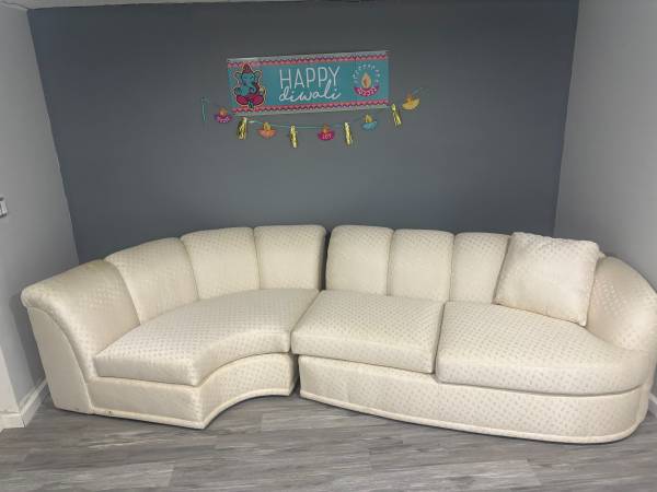 White Fabric Upholstered Sectional Sofa are Free. Light weight. Not heavy at all. Photos attached. Come and pick it up. Please bring your truck and two people. Sofas are in basement, but there is walk-out basement, so it shold be fine. They are in sections and they are not heavy. You will have to load it by yourself. I will not be able to help you.