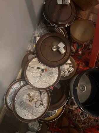 Just updated my ceiling lights. Have about 10 that have been removed. All must go. Some have a little bit of white paint but most are fine. All have covers and work. Text to pick up.